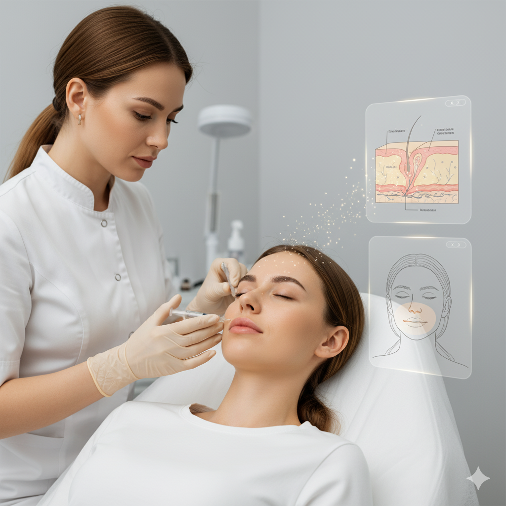 O procedimento é realizado por meio de microinjeções aplicadas estrategicamente ao longo do corpo e do arco do lábio, seguindo a anatomia natural de cada paciente. Para garantir o máximo de conforto, utiliza-se anestésico tópico para diminuir a sensibilidade da área. A aplicação é um processo rápido, durando em média de 15 a 30 minutos.